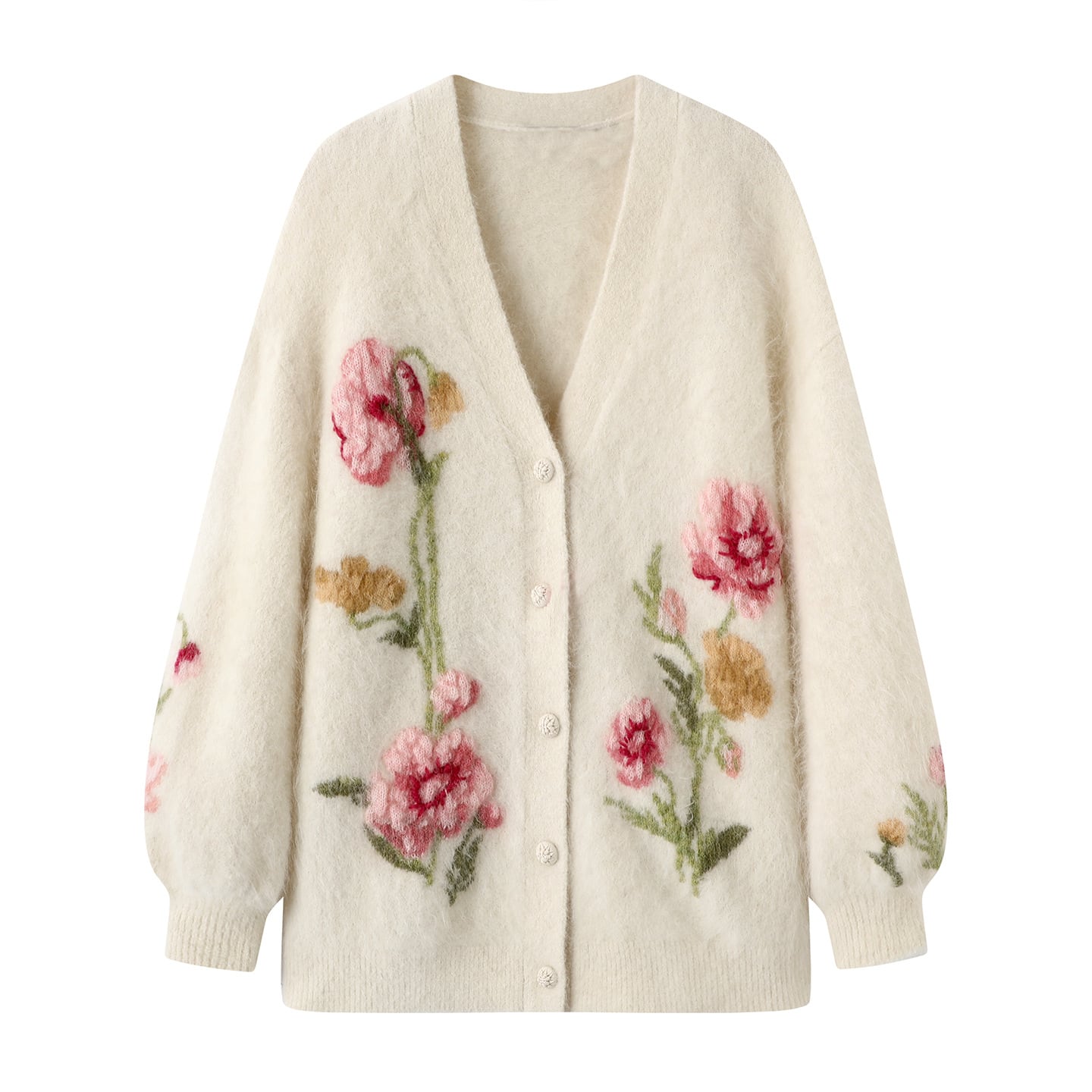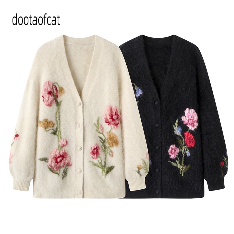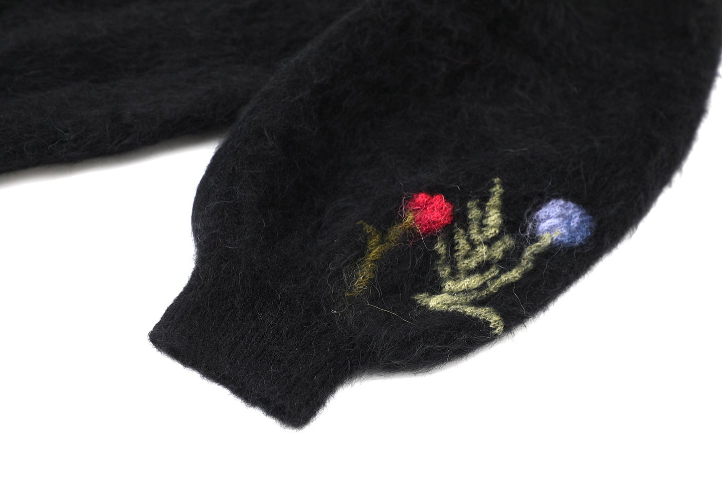 マハイ毛を使用した柔らかな触感に加え、季節感を感じさせる提花刺繍が特徴的です。デニムやスカートとコーディネートしやすく、カジュアルはもちろん、ちょっとしたお出かけにもぴったりなアイテム。春の訪れを楽しむためにぜひ取り入れたい一枚です。