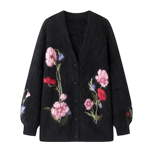 刺繍モヘアニットカーディガン
