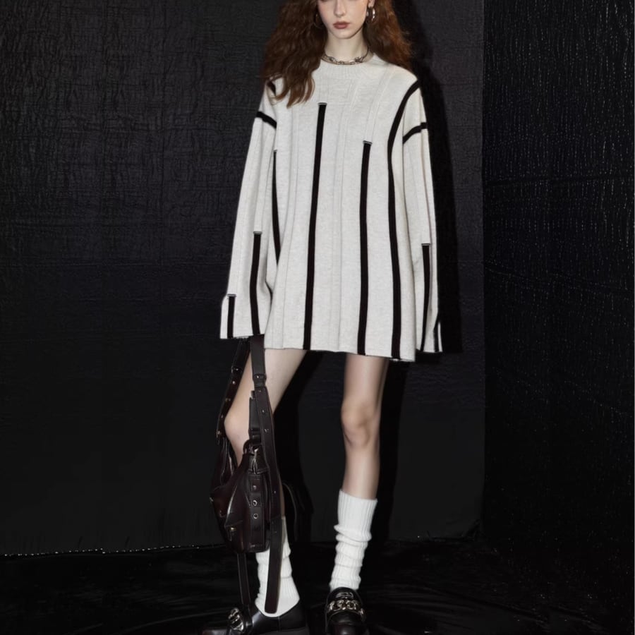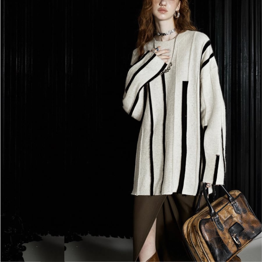 縦ラインの立体編みとバイカラーデザインでオーバーサイズなのに上品見え✨