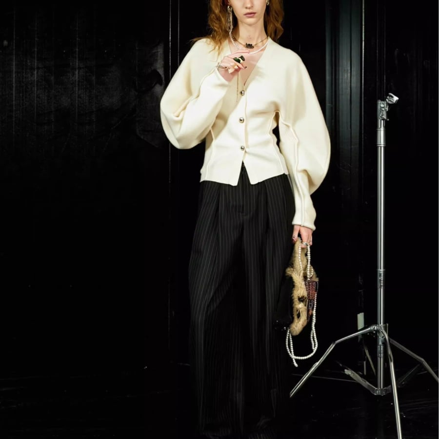 Vネックデザインスリーブセーター
