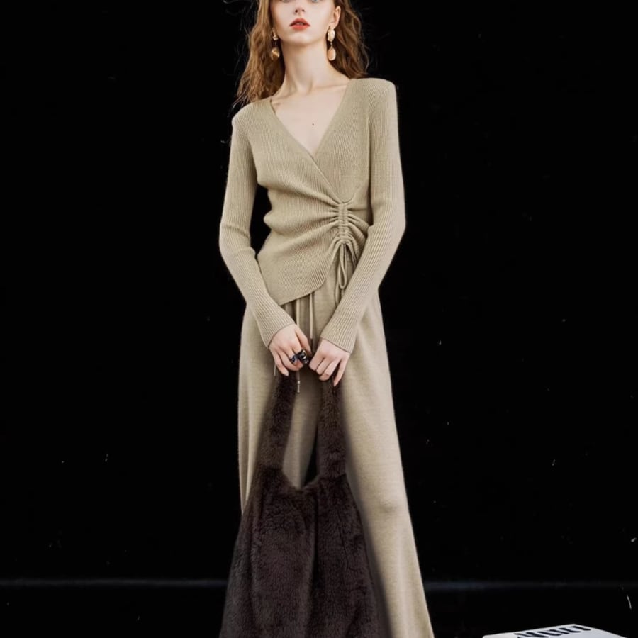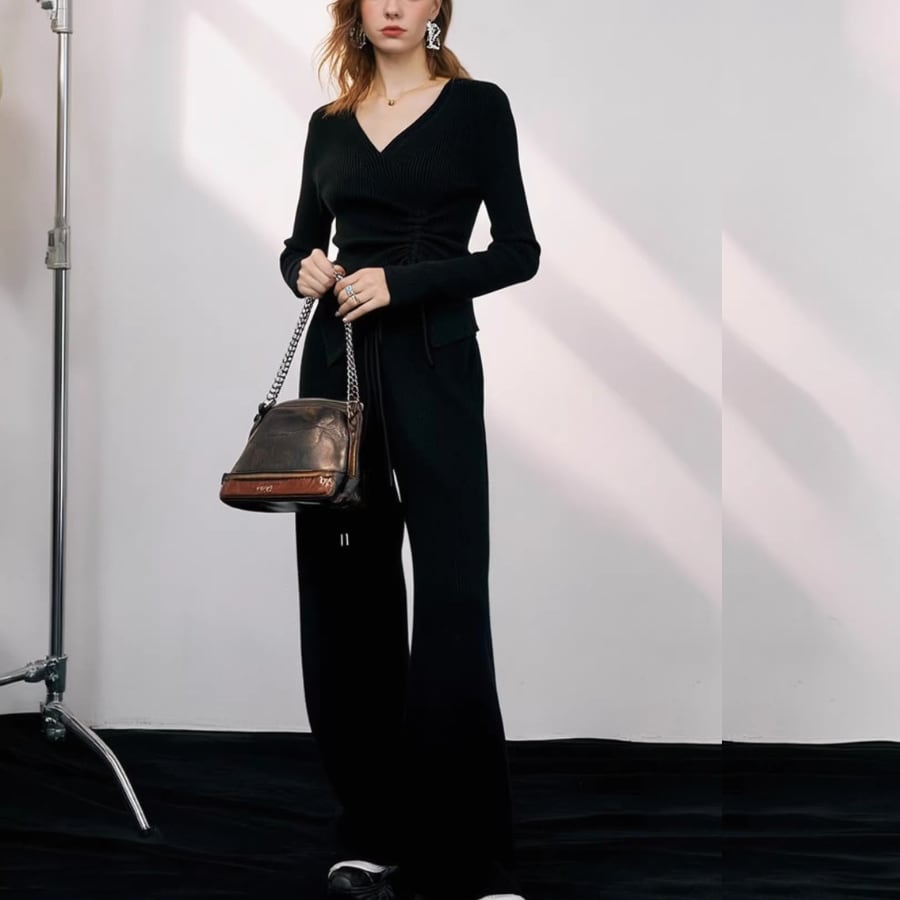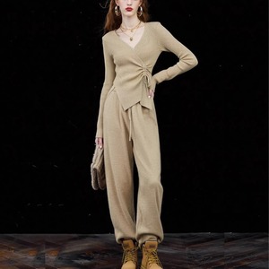 ニットトップ&ワイドレッグパンツセット