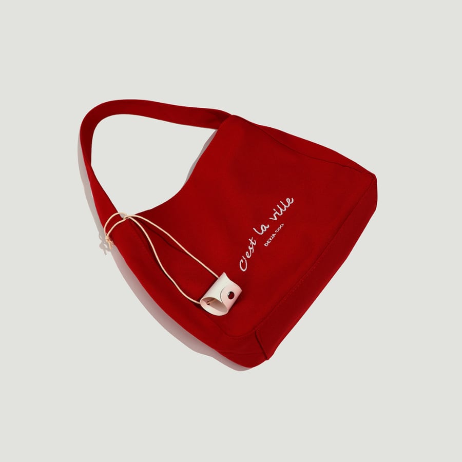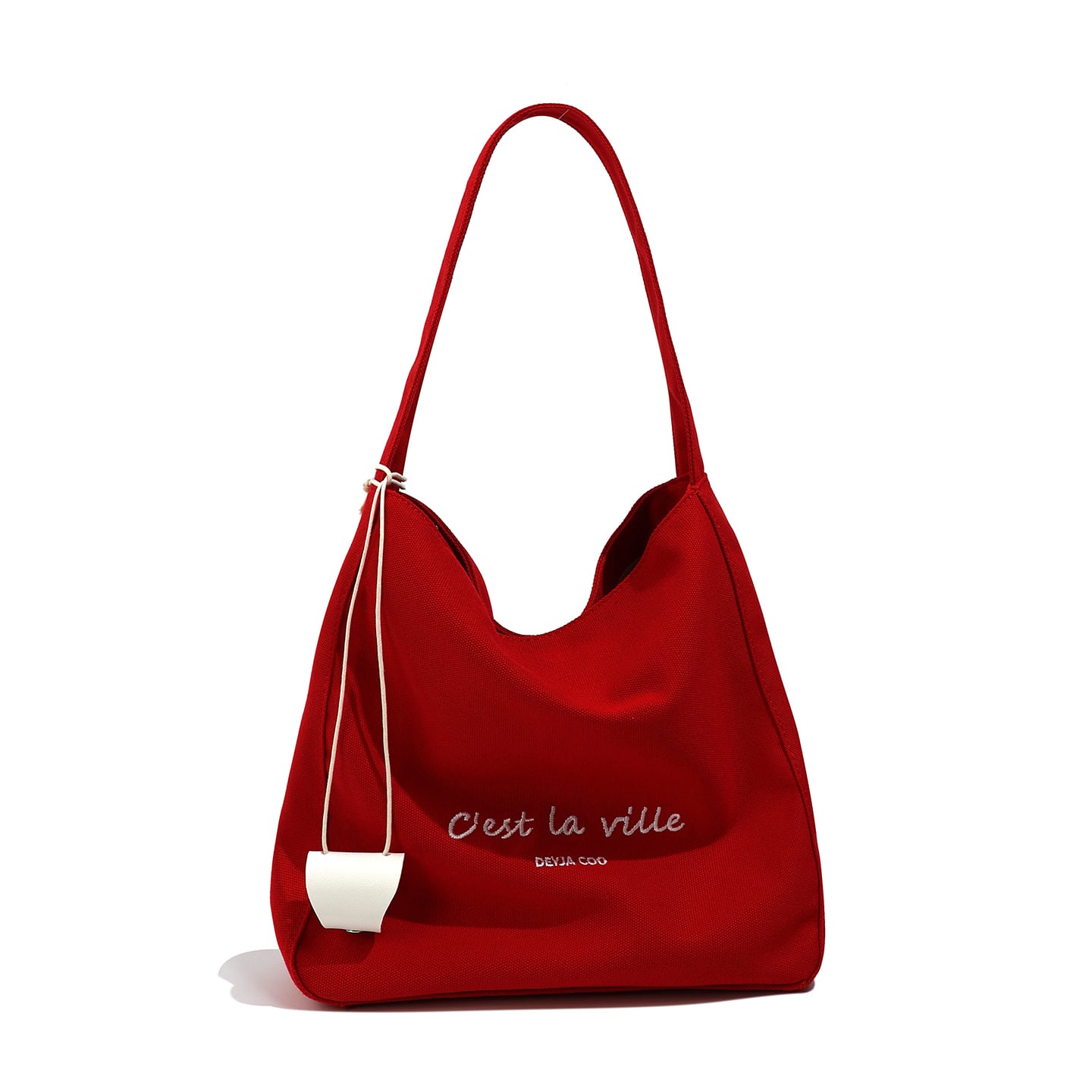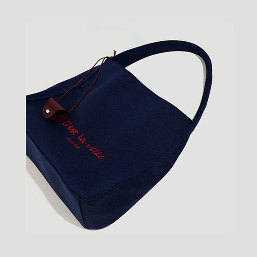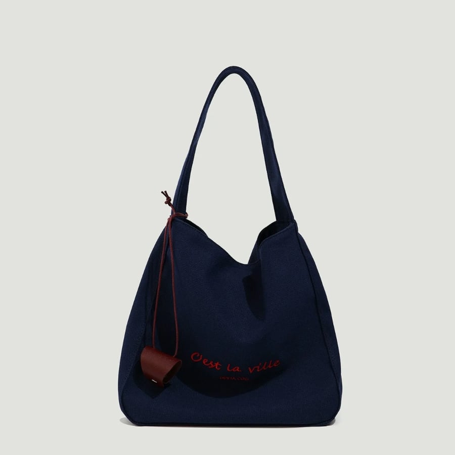 立体感のあるロゴ刺繍がアクセントになった、キャンバス素材のワンショルダーバッグ。