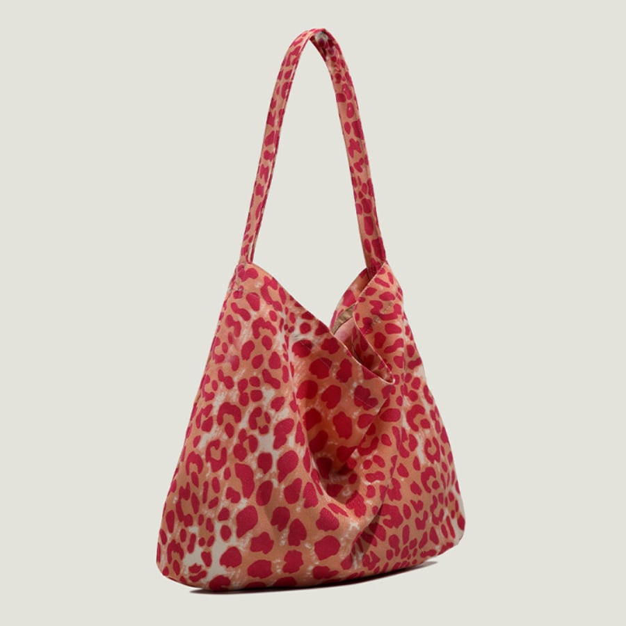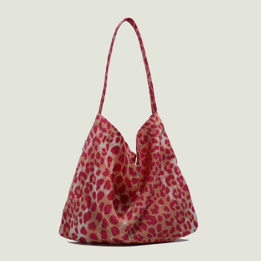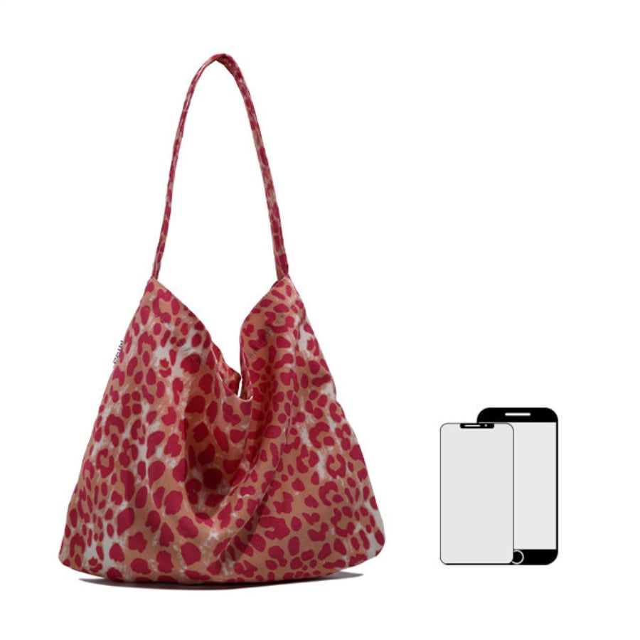 韓国の洗練されたデザインが光る、のんびりしたラズベリーピンクのヒョウ柄キャンバスバッグです✨