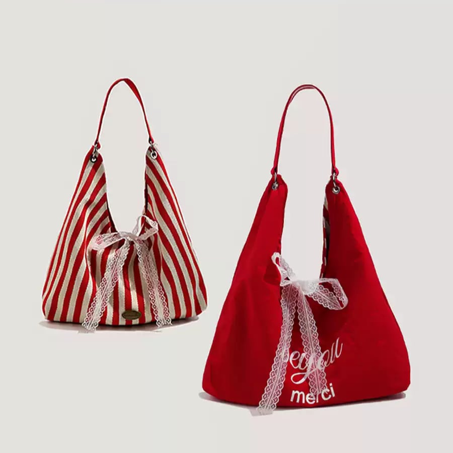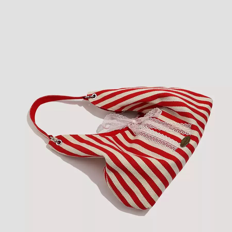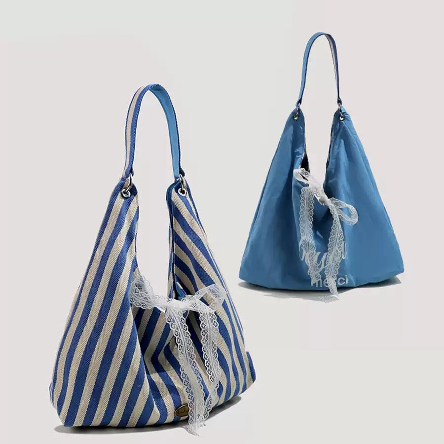 ストライプ両面ショルダーバッグ