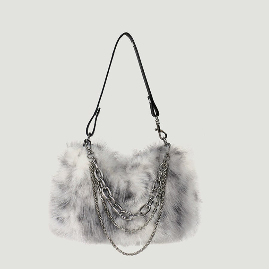ハイグレードなファーリー素材を使用し、意匠を凝らしたハンドバッグは、シンプルながらもおしゃれな存在感を放ちます。ショルダーやクロスボディとしても使える多機能デザインは、様々なシーンにぴったり。小ぶりながらも収納力も兼ね備えています。