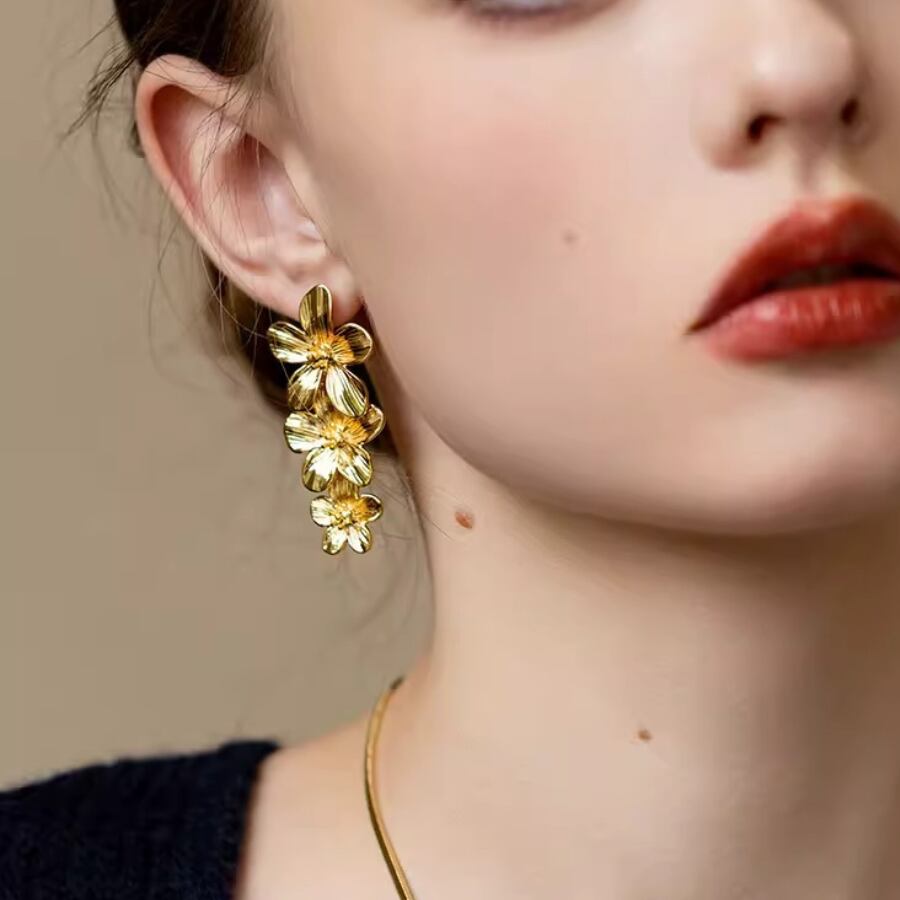 目を引く花柄デザインと、印象的なメタルタッセルが魅力のピアスです。耳穴がない方でも気軽におしゃれを楽しめるイヤークリップ仕様で、どんなスタイルにも合わせやすく、特別な日のお出かけにも最適です。