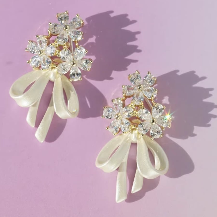 「スーパーフェアリーリボン」の華やかなデザインが、柔らかく揺れる仕草を演出し、どの角度から見ても美しい印象を与えます。結婚式やパーティーはもちろん、カジュアルコーデにもぴったりフィットし、デイリー使いにも最適です。