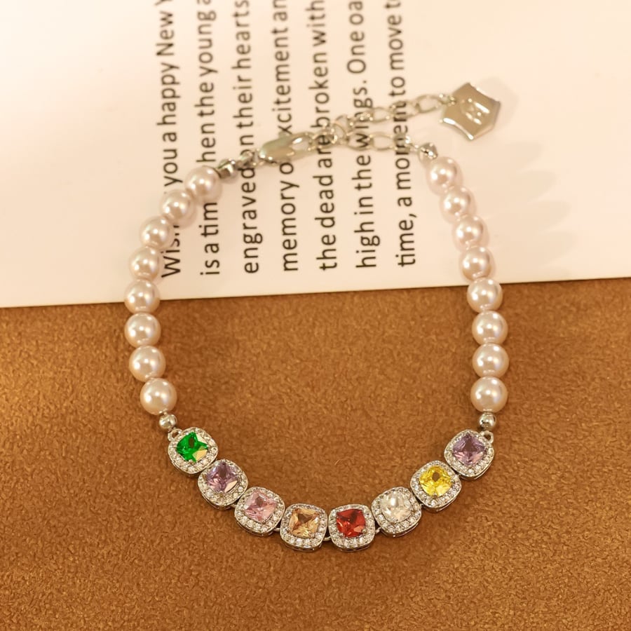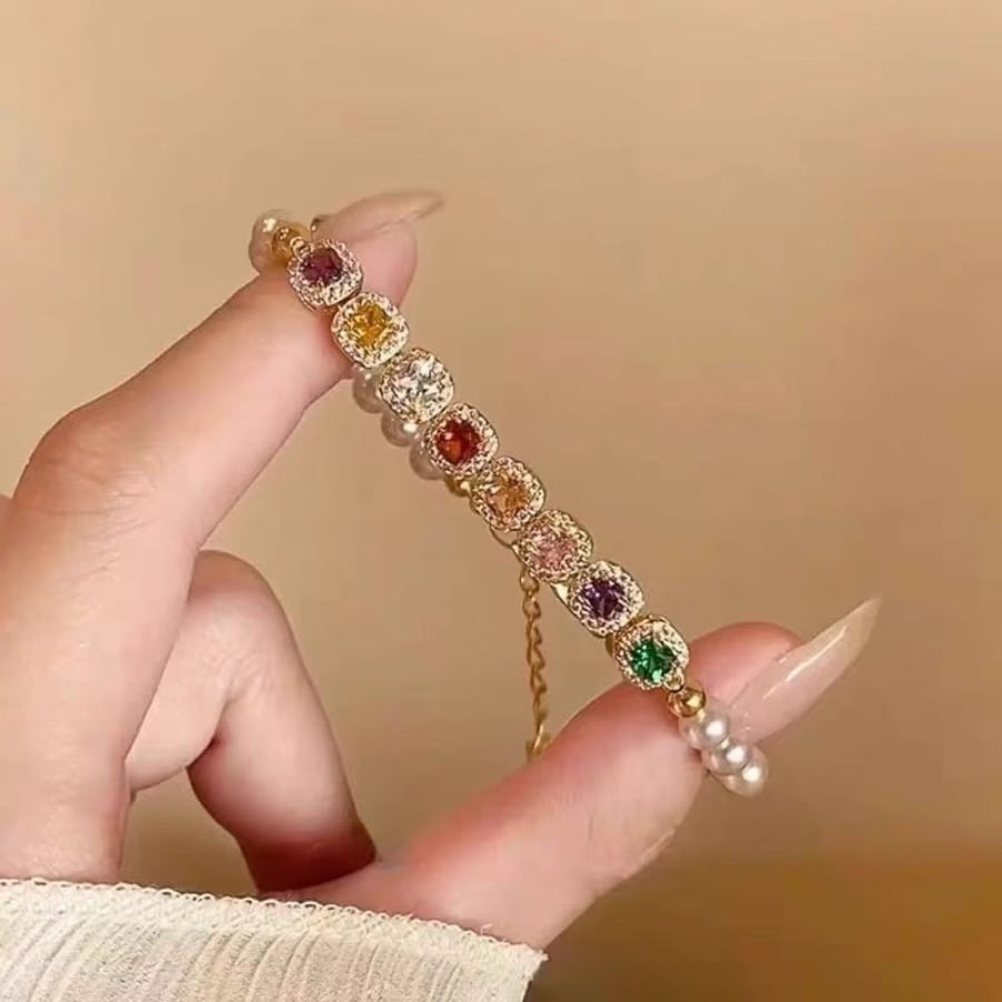 色とりどりのジルコンとパールビーズを組み合わせたこのブレスレットは、軽やかな印象とともに、手元を美しく彩る絶妙なデザイン。特別な日のお出かけや、日常使いにもぴったりで、どんなスタイルにもマッチします。自分へのご褒美や、大切な人へのギフトにもおすすめです。