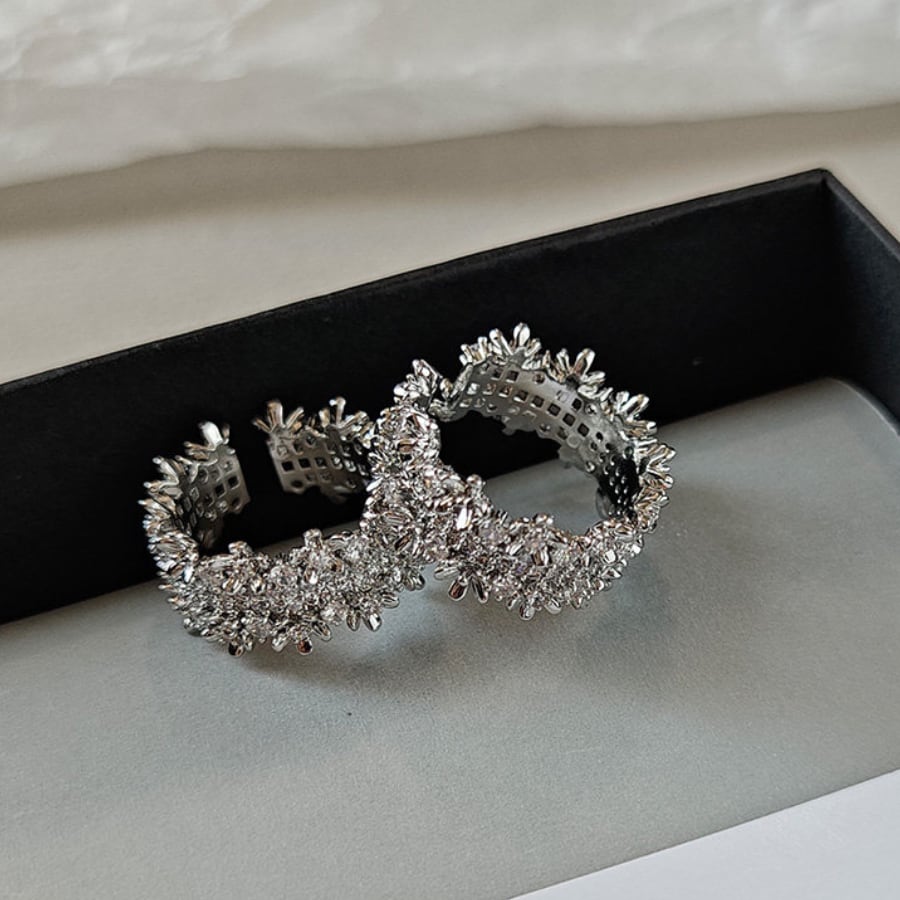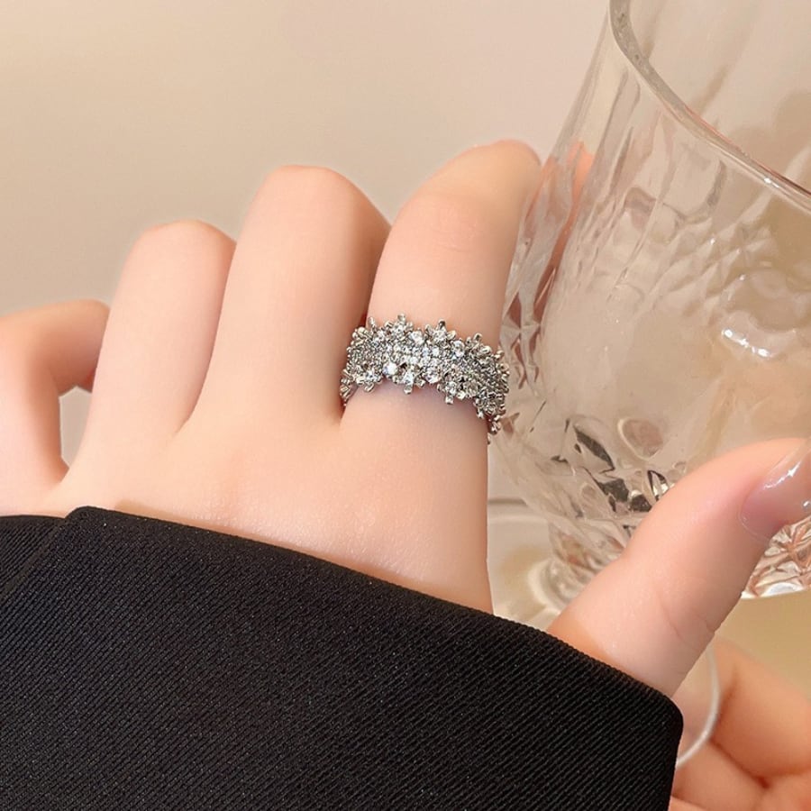 独特なニッチデザインが指元を華やかに彩り、カスミソウのような繊細な美しさを表現。このリングは、豪華感と軽やかさを兼ね備え、特別な日からカジュアルなシーンまで幅広く使えるアイテムです。調節可能なサイズで、どんな指にもフィットするため、プレゼントにも最適です。