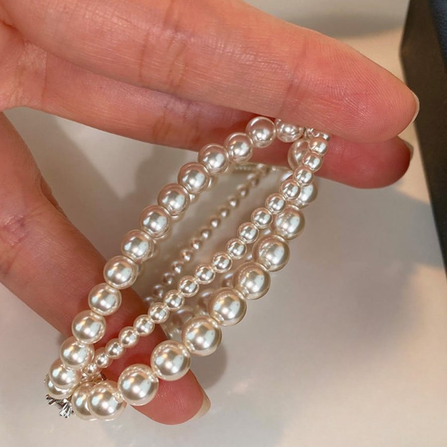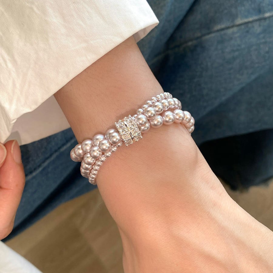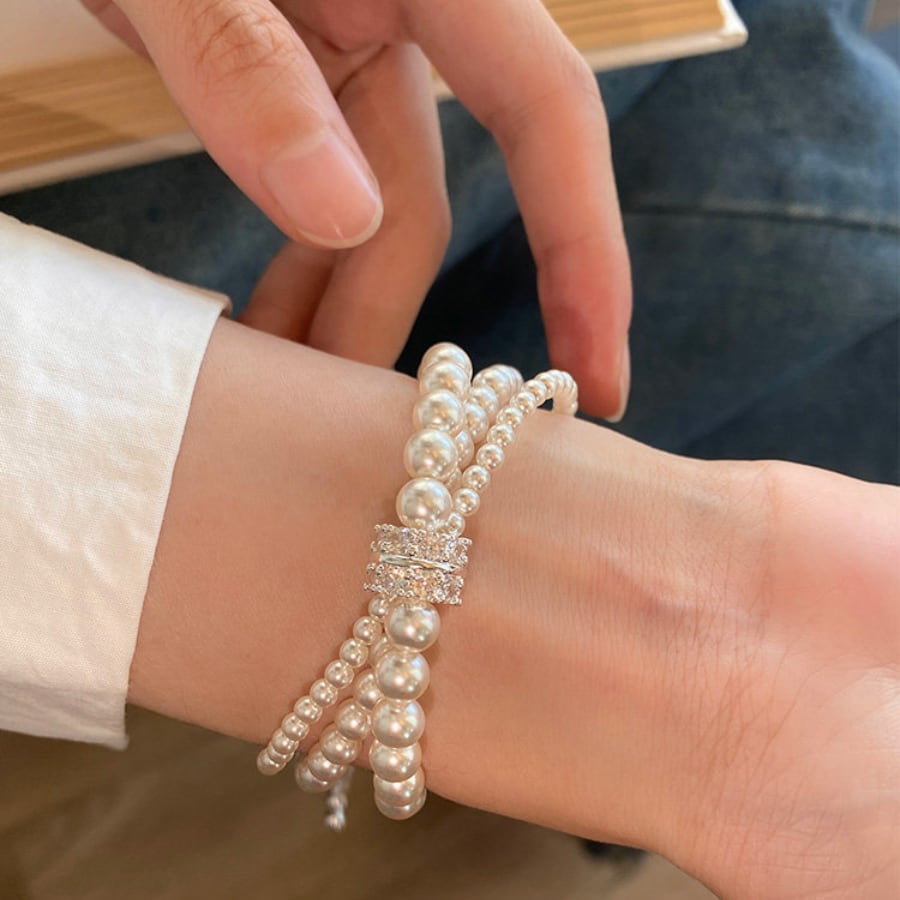 このブレスレットは、多層のパールと美しいクリスタルジルコンが組み合わさり、どんなスタイルにも華やかさをプラスします。