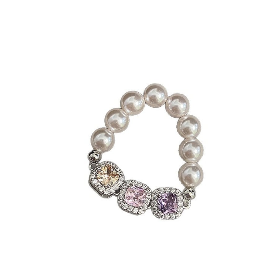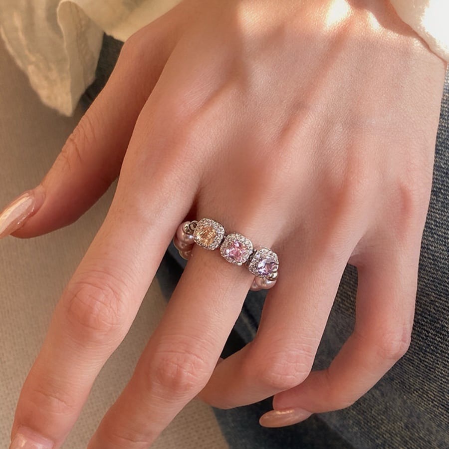 色とりどりのジルコンビーズが輝くこの指輪は、ニッチなデザインが魅力。伸縮性のあるロープ素材で、フィット感も抜群です。カジュアルからフォーマルまで、幅広いシーンで活躍する一品です。