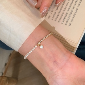 シンプルながらも洗練された印象を与える、このブレスレットは女性の手元を美しく彩ります。高品質なフラッシュジルコンとXiaomiパールを贅沢に使用し、光の加減で輝きを放つ仕上がりが魅力です。細やかなチェーンデザインが、どんなスタイルにもマッチし、カジュアルからフォーマルまで幅広く活躍します。
