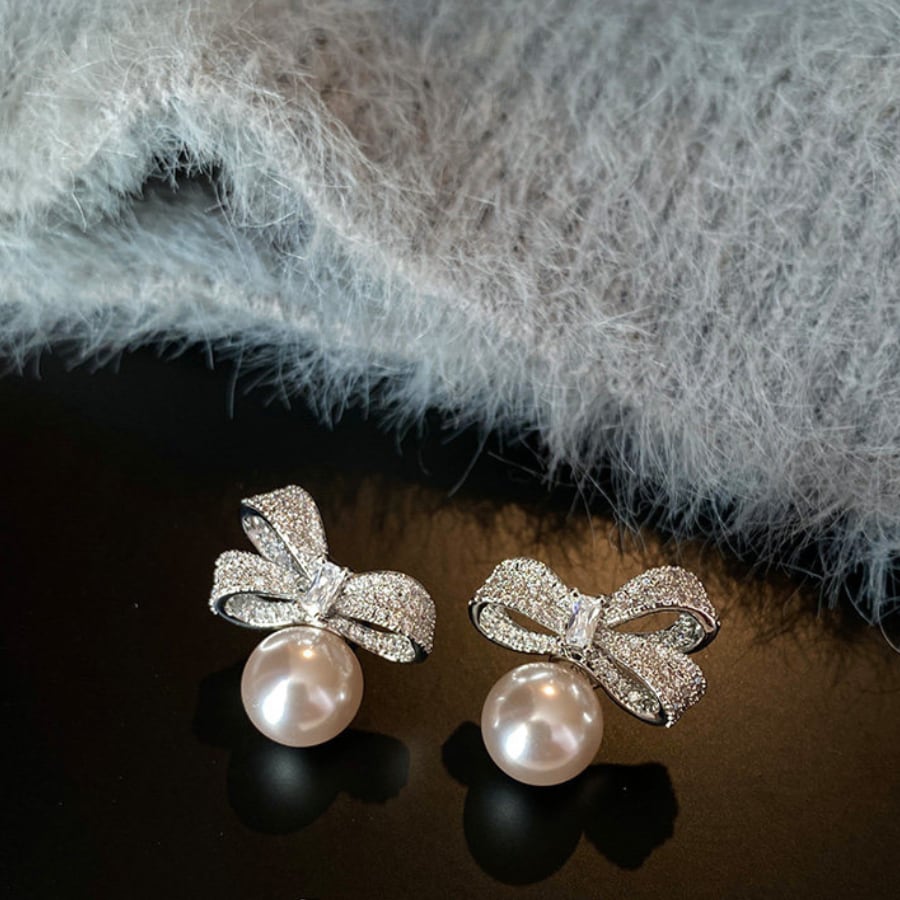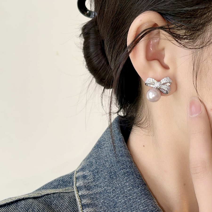 高品質なアトモスフェリックデザインが特徴のこのピアスは、優雅な蝶結びモチーフと美しいパールが組み合わさり、耳元を華やかに演出します。ラグジュアリーな輝きは、特別なイベントはもちろん、カジュアルな日常使いにもぴったりで、どんなスタイルにもマッチします。