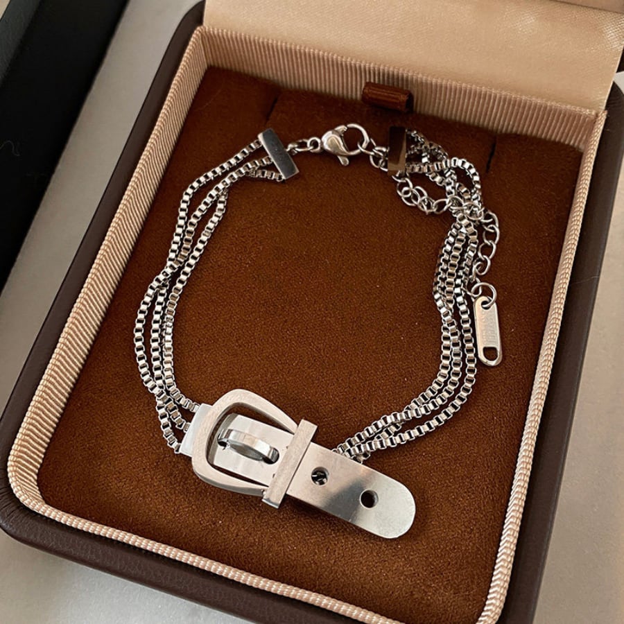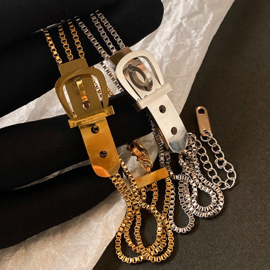 ヨーロピアン&アメリカンゴールドとシルバーチタンスチールを使用したシンプルながらも存在感のあるデザイン。おしゃれな女性にぴったりのアイテムです。クールなスタイルを引き立て、どんなシーンでも華やかさをプラスします。