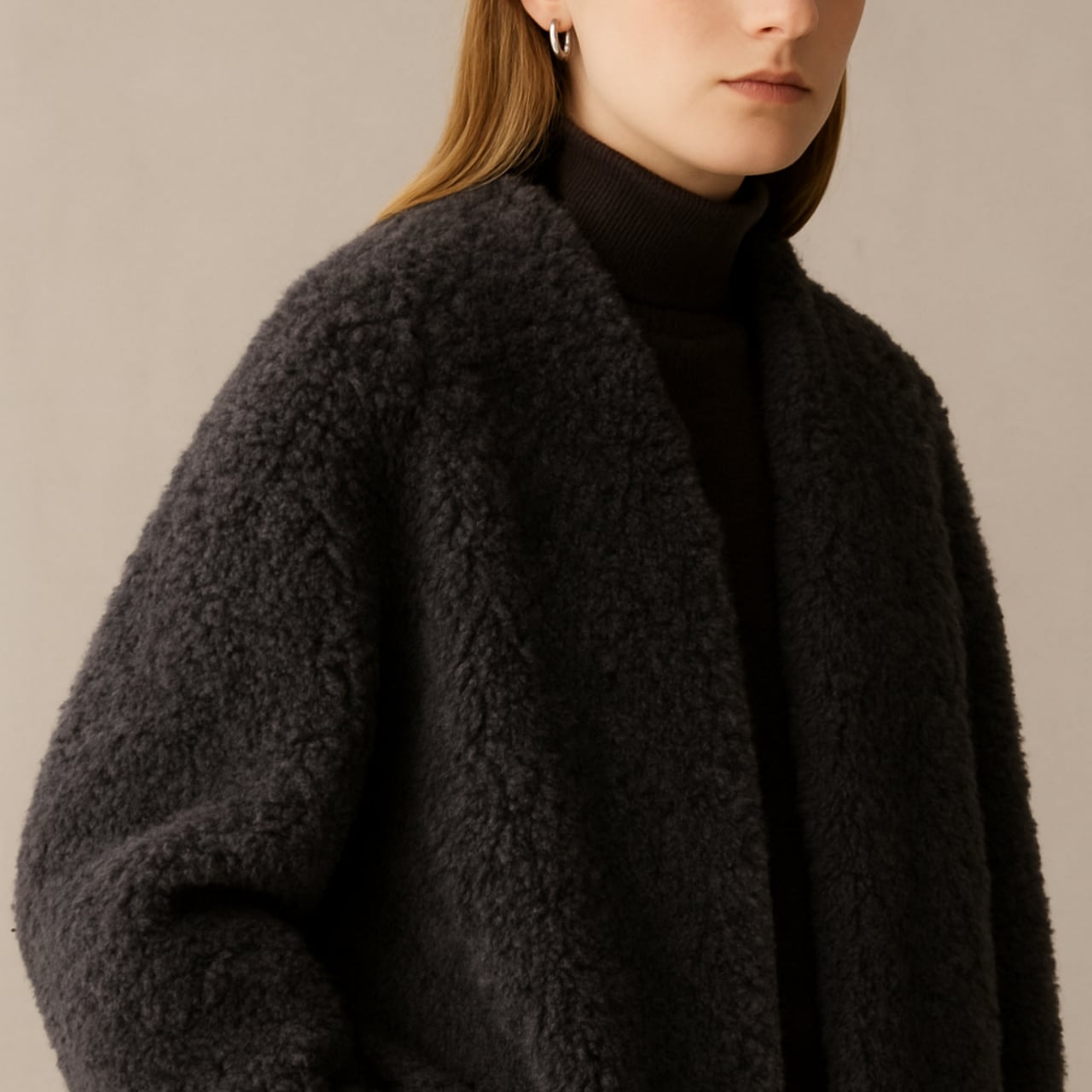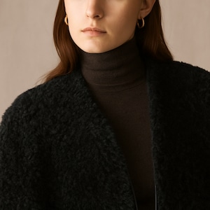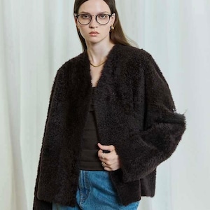 ふんわり柔らかな風合いが魅力の、大人のための上品ファージャケット。