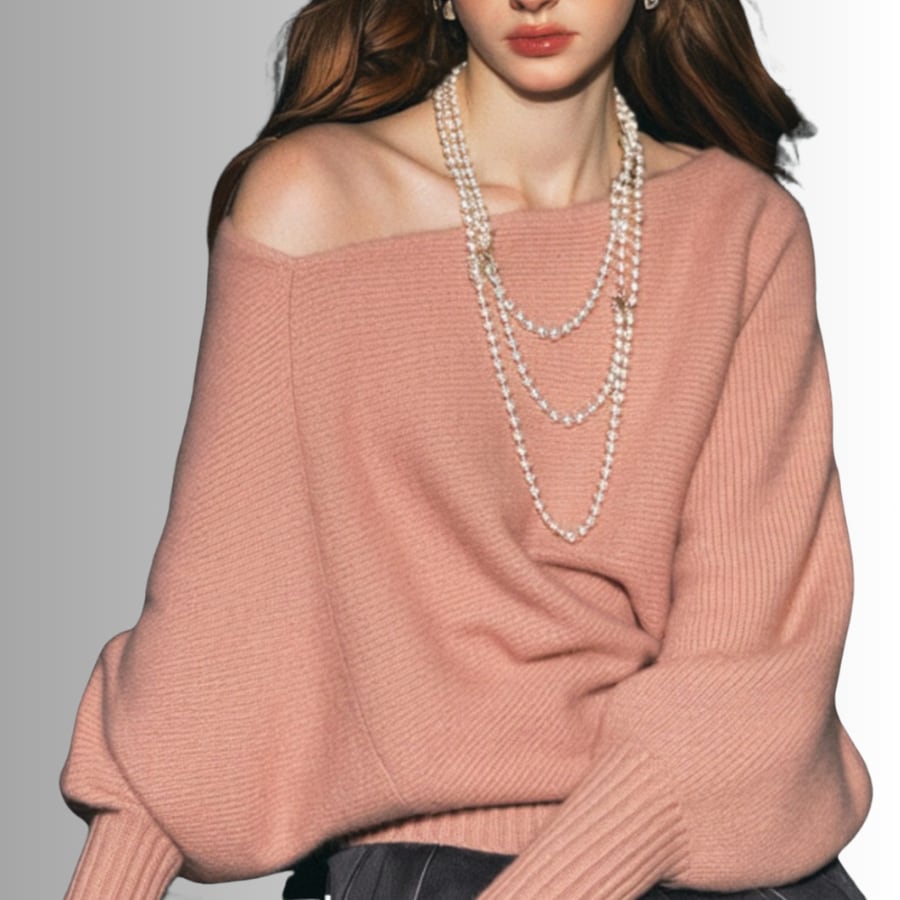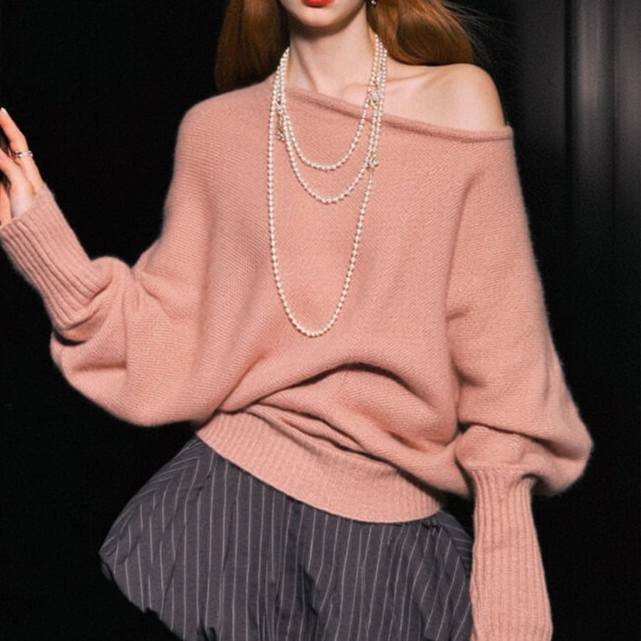 肩のラインをふんわり魅せる、ゆるっとしたオフショル風デザインが大人可愛いニットトップス✨