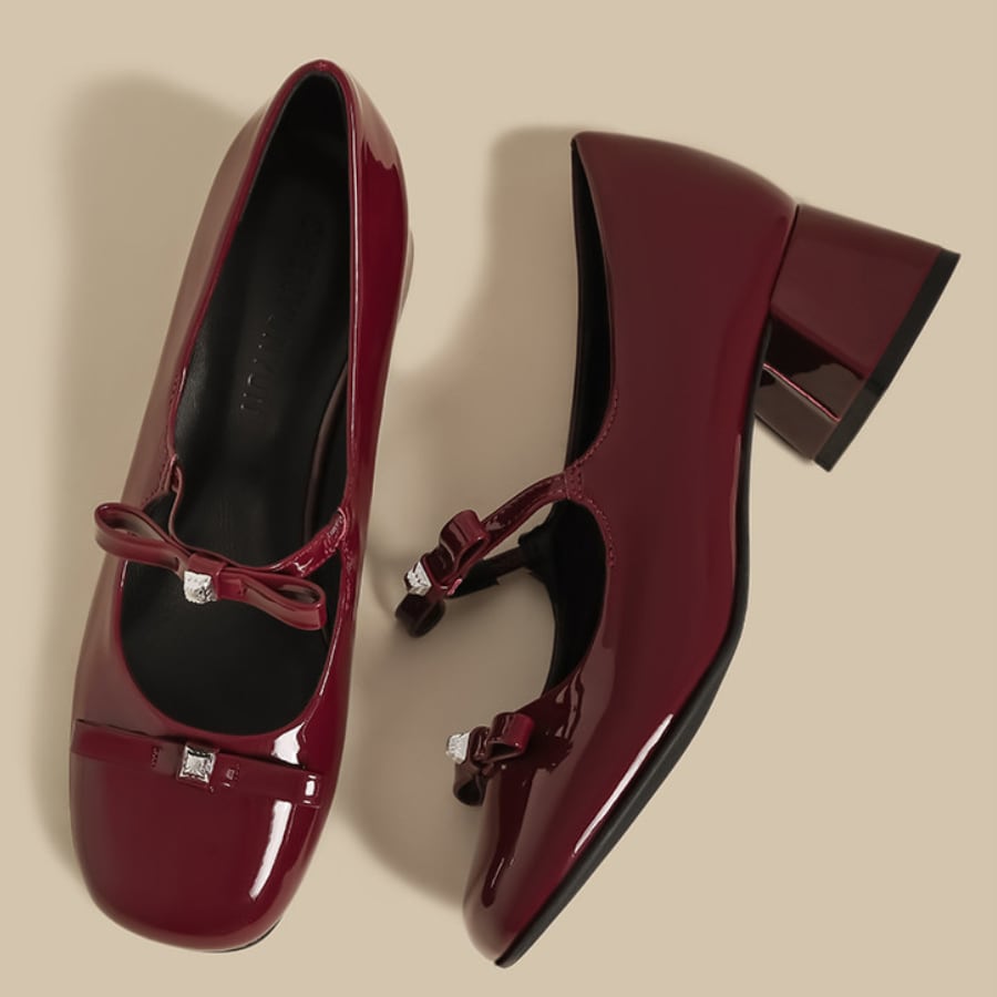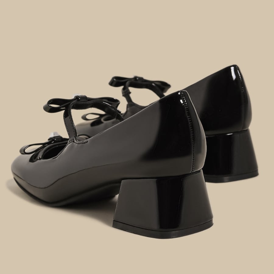 つや感のある素材と、さりげないリボンディテールが女性らしい印象を演出します。
