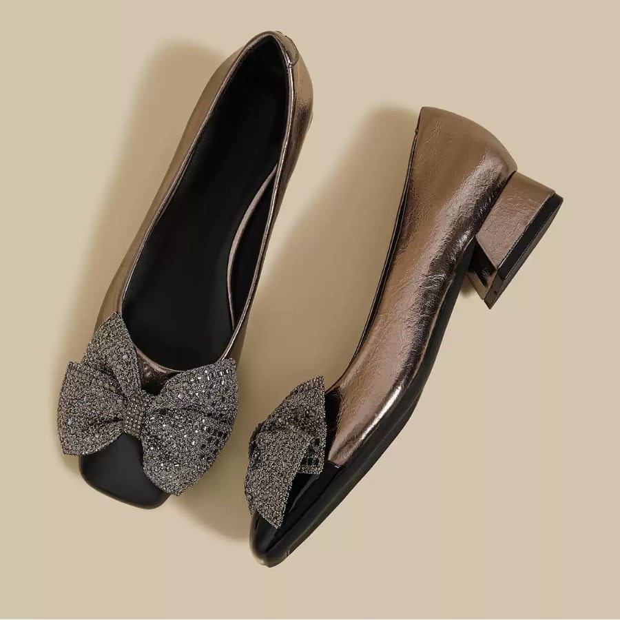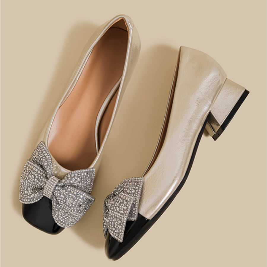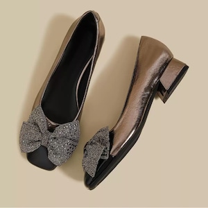 足元にレトロな魅力を添える、フレンチローカットシングルシューズです!ラインストーンボウが華やかさをプラスし、上品な印象を与え、どんなコーディネートにもマッチします。