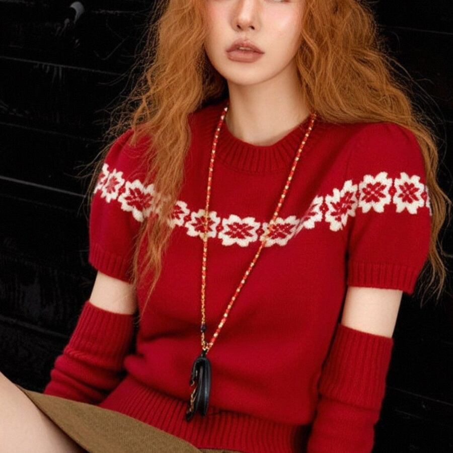 このセーターは、ラウンドネックとクリスマスフェアアイル模様が特徴で、日常使いはもちろん、特別なシーズンイベントでも大活躍。デザインの可愛らしさがあなたのスタイルに華やかさを添えること間違いなしです✨ どんなコーディネートにも簡単に合わせられるエレガントなアイテムです。