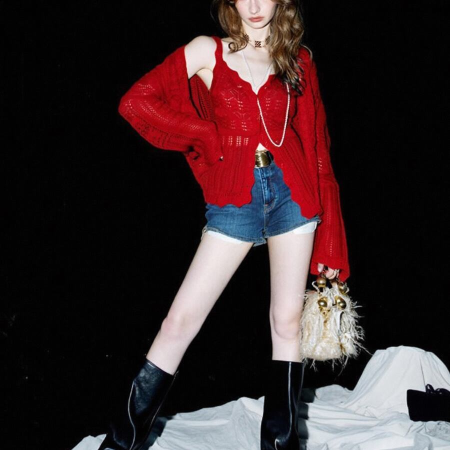 柔らかいニット素材が魅力で、フレアスリーブのデザインがエレガントさを演出します。カジュアルなお出かけから、特別なイベントまで、幅広いシーンで活躍すること間違いなし✨ スタイリングやレイヤリングが簡単で、他のアイテムとも組み合わせやすく、多様なコーディネートが楽しめます!