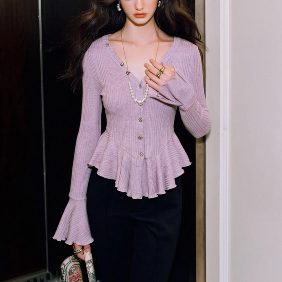 フリル Vネックスリムフィットトップ