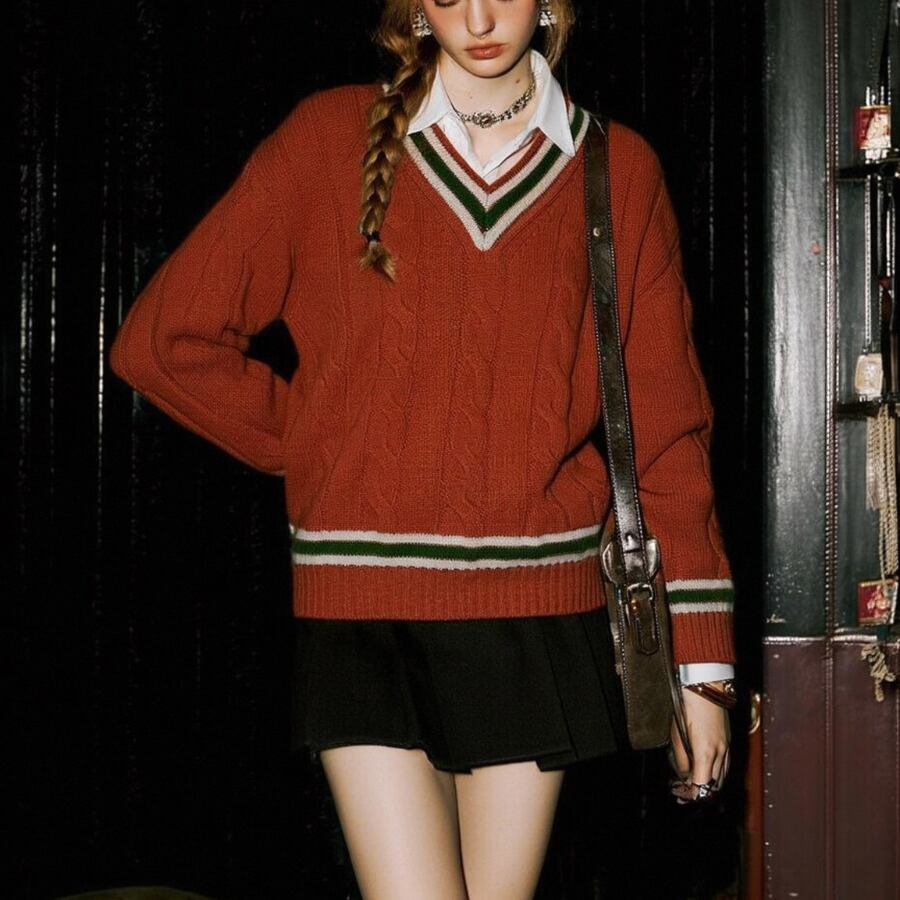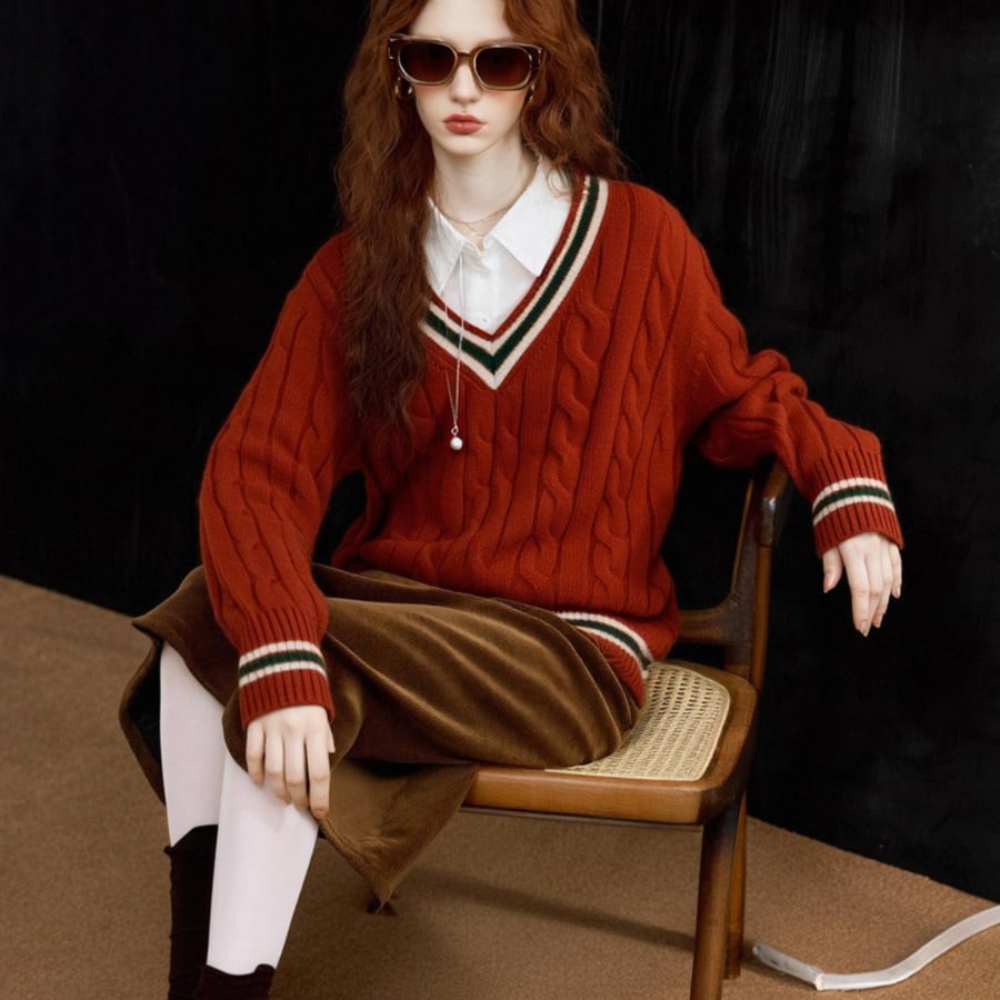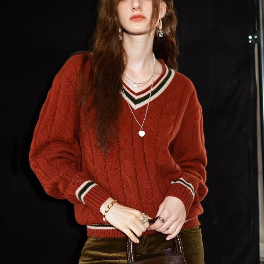 このセーターは、ゆったりとしたフィット感とトレンド感のあるVネックが魅力で、デイリースタイルから特別なシーンまで幅広く対応します。コントラストカラーの配色がアクセントとなり、シンプルながらも存在感のある仕上がりになっています。温かみのある素材感が、寒い季節にも快適さをもたらし、長時間の着用でも心地よく過ごせます!