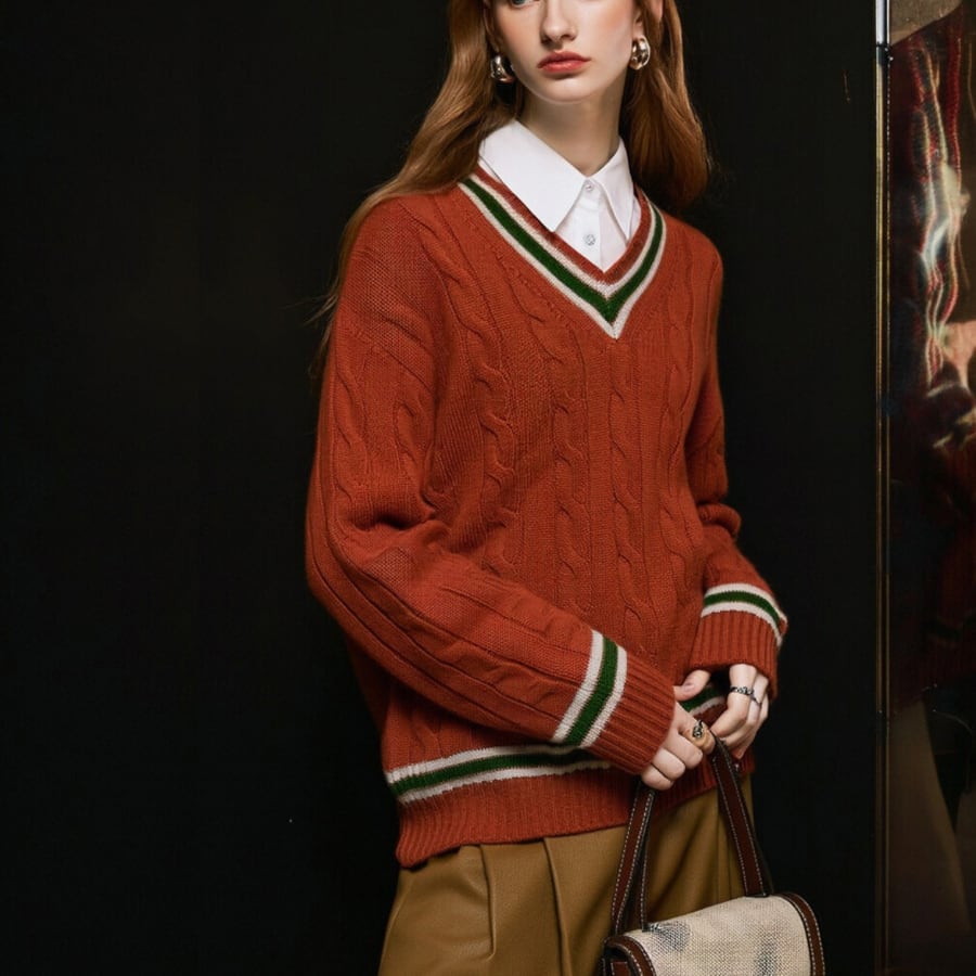 Vネックコントラストカラーセーター