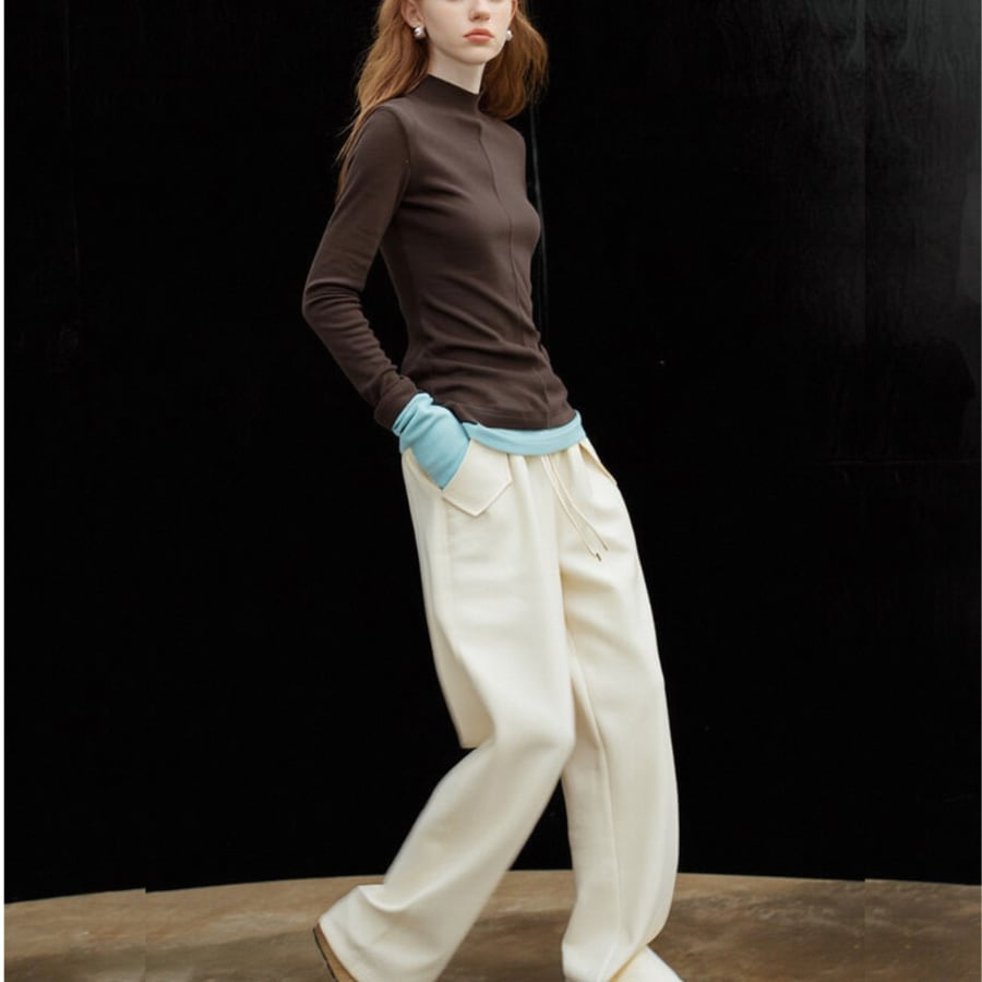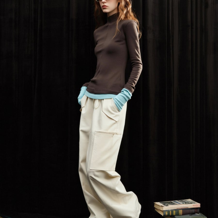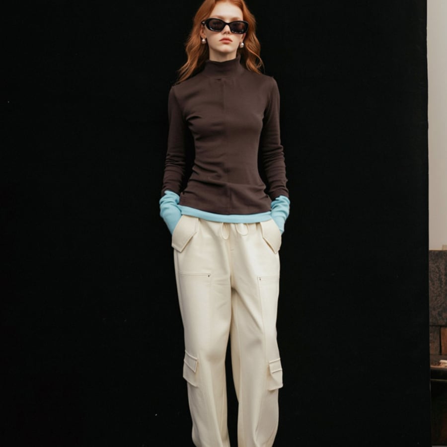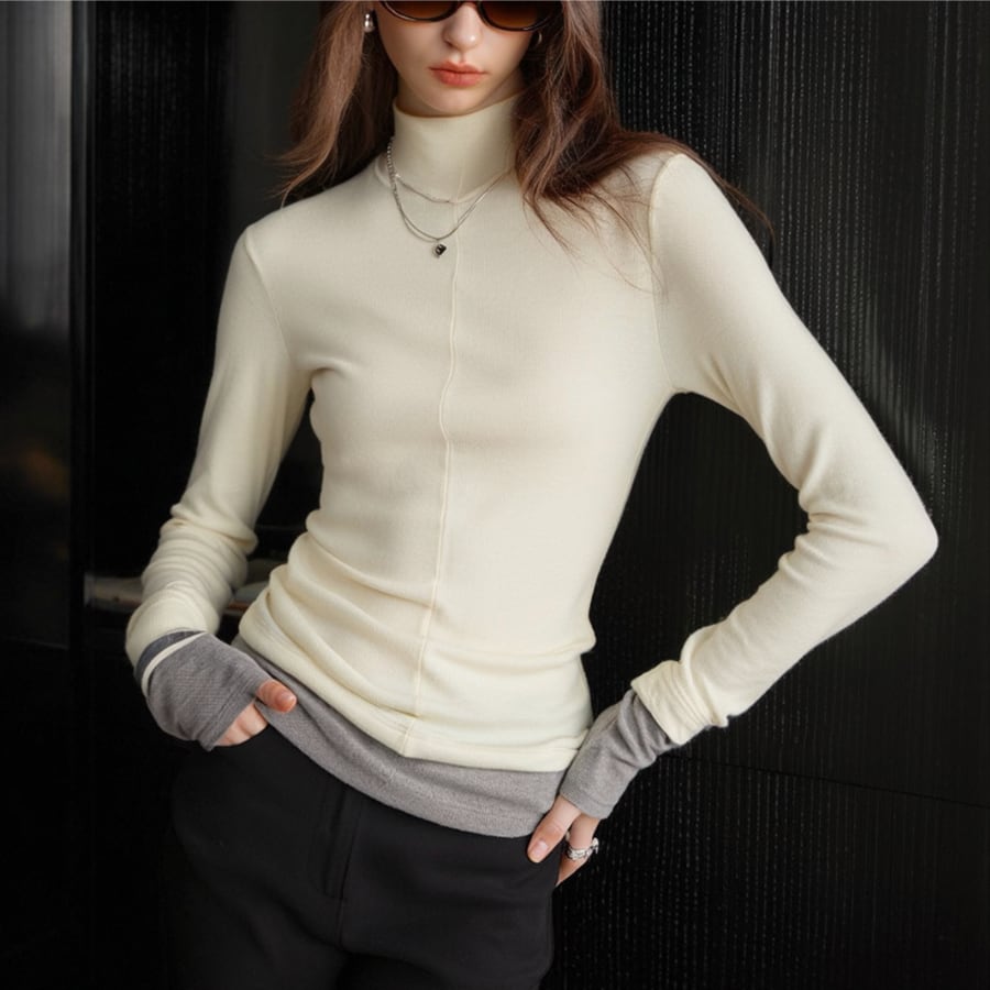 このニットTシャツは、ハイネックデザインと独特なコントラストステッチが特徴で、シンプルながらも存在感を放つスタイルを演出します✨ 裏起毛の素材が心地よく、肌寒い日にも安心して着用いただける一枚です。フレンチスタイルのディテールが、どんなボトムスとも相性抜群で、デイリーユースからおしゃれな外出まで幅広く活躍します!