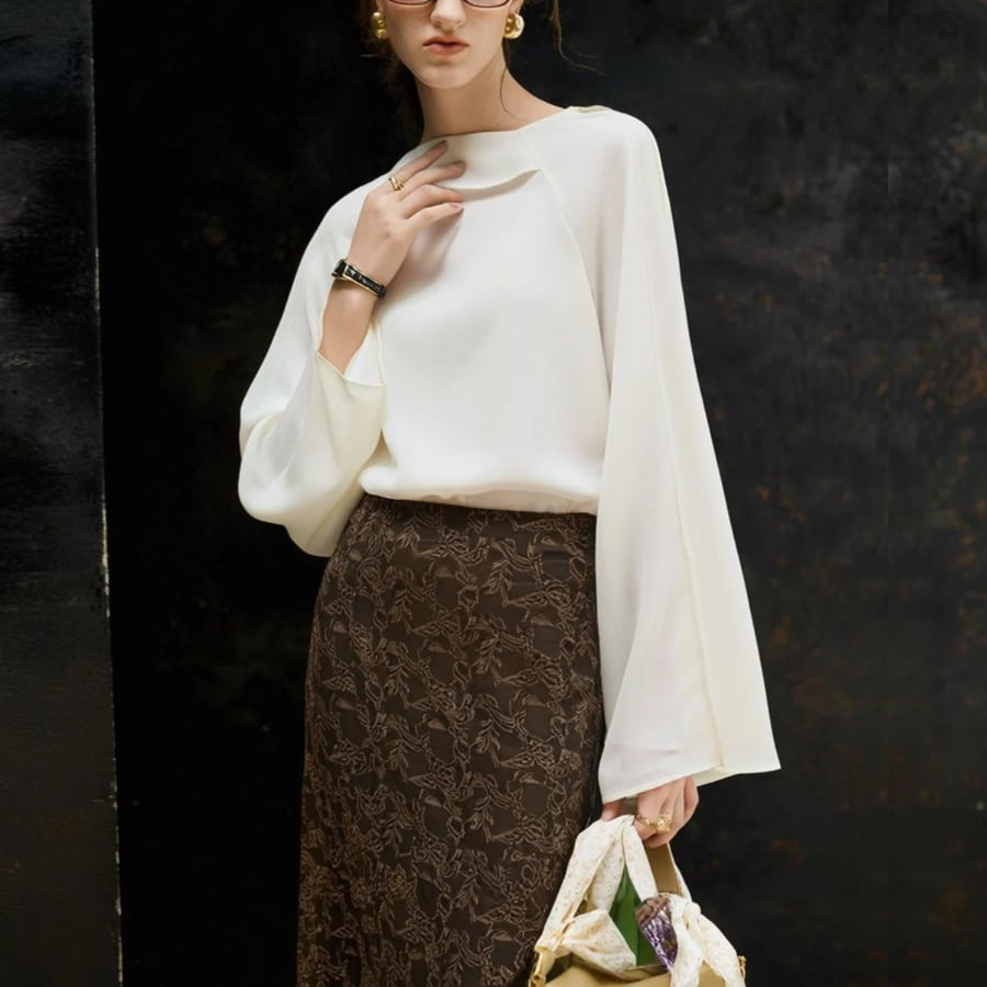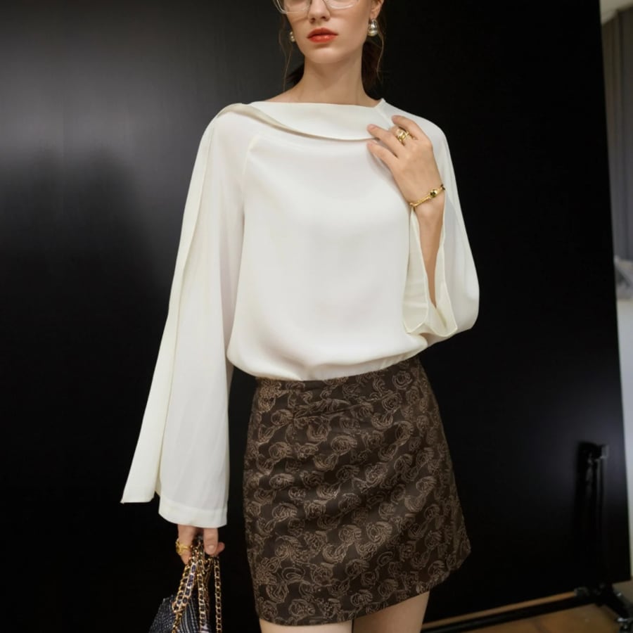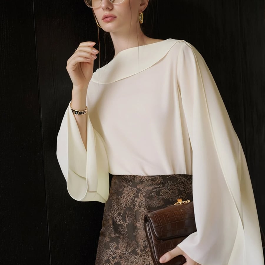 エレガントドレープロングスリーブシャツ