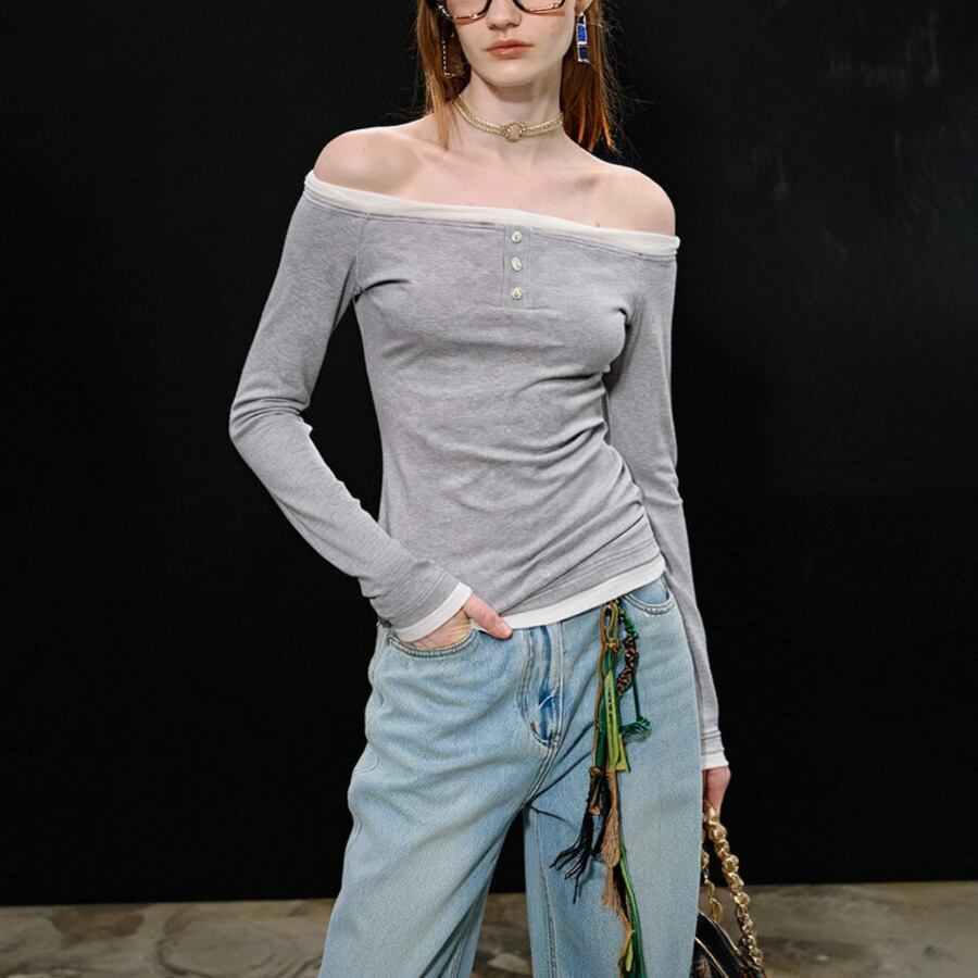 このワンラインネックTシャツは、シンプルでありながら美しいステッチデザインが特徴で、カジュアルさとモダンな感覚を見事に融合させています。スリムなシルエットは体型を美しく引き立て、春の暖かな日差しの中でも心地よく着用できること間違いなし✨ オフィスやカジュアルな日常のコーディネートに大活躍の一着です。