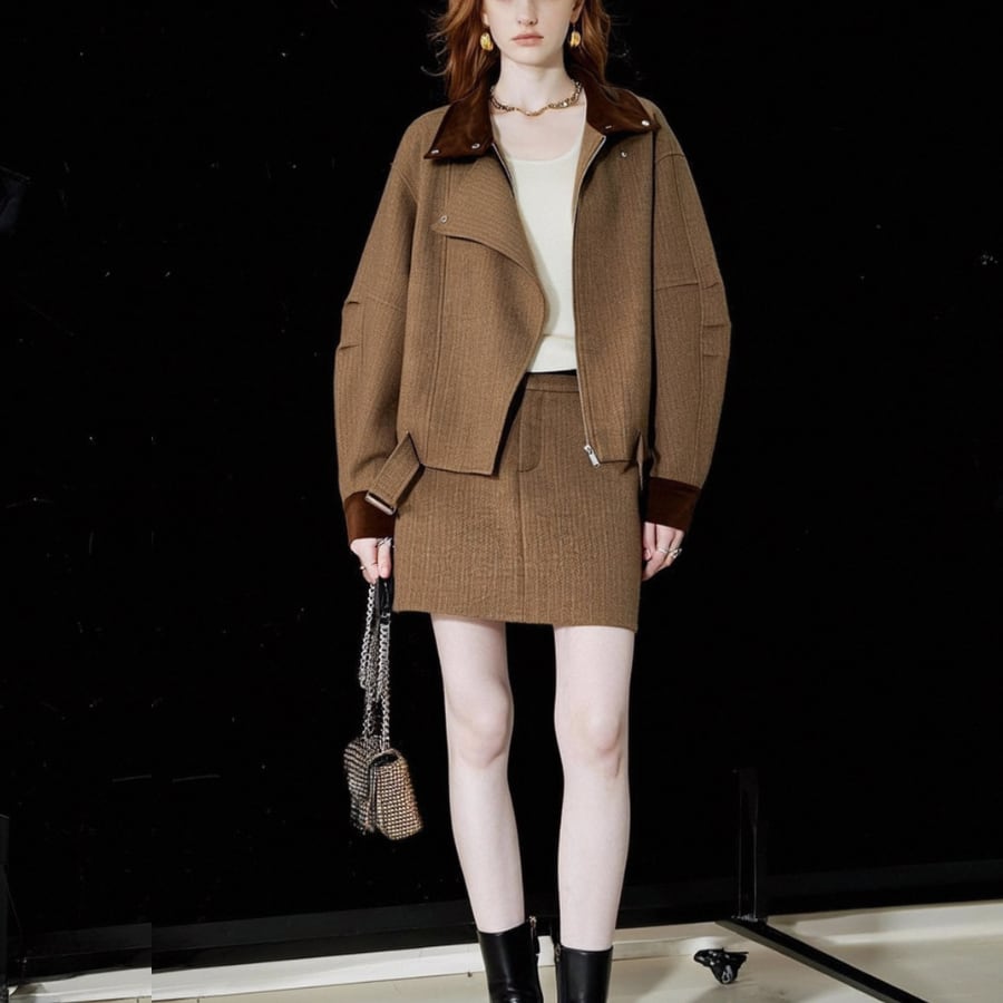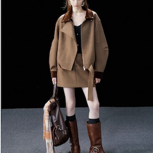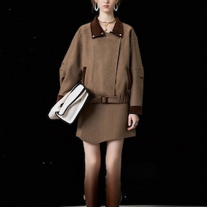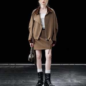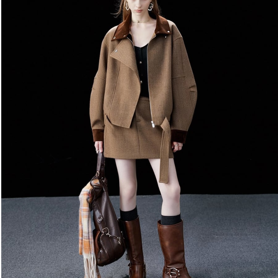 このショートコートジャケットは、ラペルデザインが特徴で、シンプルでありながらエレガントなアイテムです。しっかりとした素材感と美しいシルエットが、デイリーユースから特別な日まで幅広く活躍すること間違いありません✨ おしゃれと快適さを両立させた一着となっています。