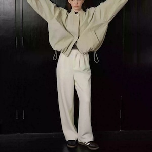 このジャケットは、フラワーバッドとスリーブルーズシルエットが特徴で、カジュアルな日常使いはもちろん、特別なシーンでも活躍します。個性的なデザインがあなたのスタイルを引き立て、オシャレ感を演出します✨ 絶妙なバランスのシルエットが、どんなコーディネートにもマッチすること間違いなしです。