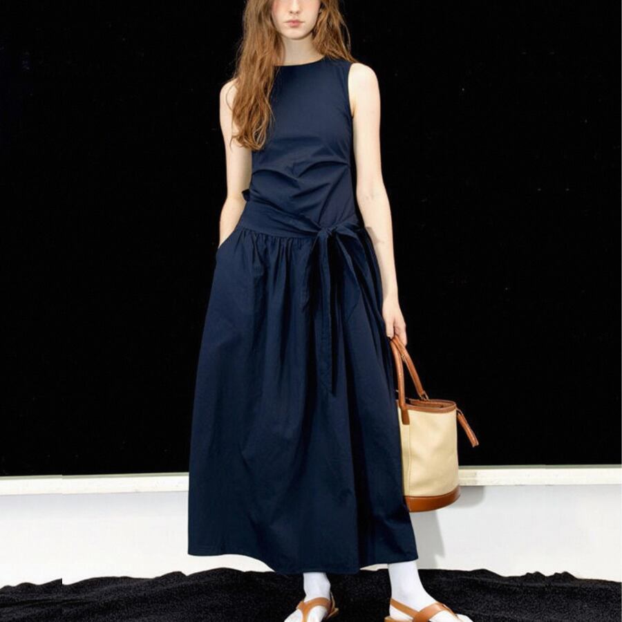 ノースリーブロングワンピース/ウエストリボン